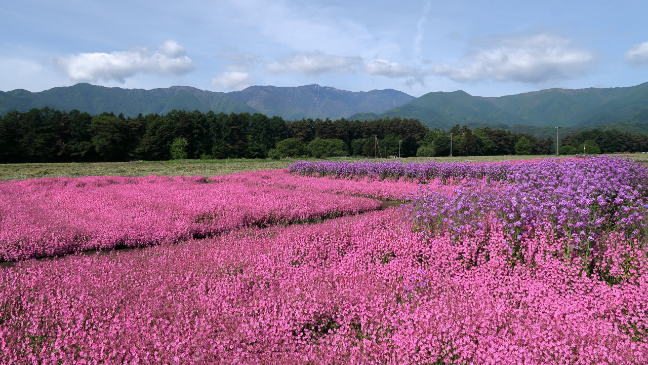 南原のフクロナデシコとは、南箕輪村南原の国道361号沿いに広がるフクロナデシコの花畑です。別名サクラマンテマやシレネ・ペンデュラとも呼ばれ、フクロナデシコ(袋撫子)は開花後の萼が袋のようになることが名前の由来とのことです。