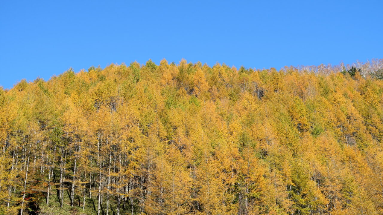 黄金色に輝くカラマツの紅葉は見事ですね!