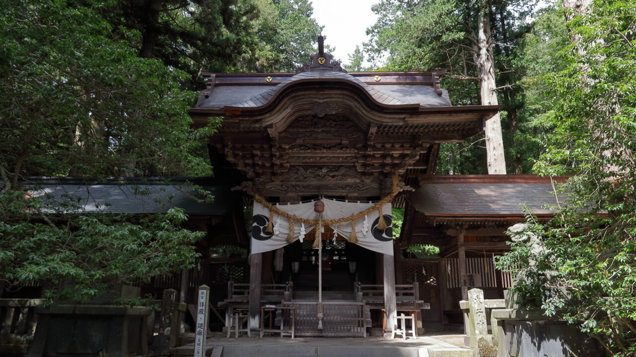 天明2年(1782年)に建てられたとされる拝殿・左右廻廊、平穏な日々と健康を祈ります。県宝に指定される貴重な建築物で、見事な彫刻も施されていますよ。
